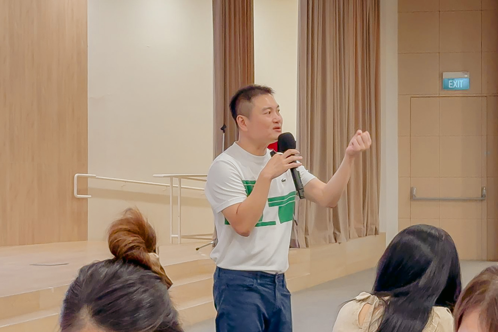 Jason Zeck Lee interacting with the teachers in a lively and engaging manner, guiding them to rediscover their original motivation for joining the early childhood education field through thought-provoking questions. (Photo by Au Foong Yee)