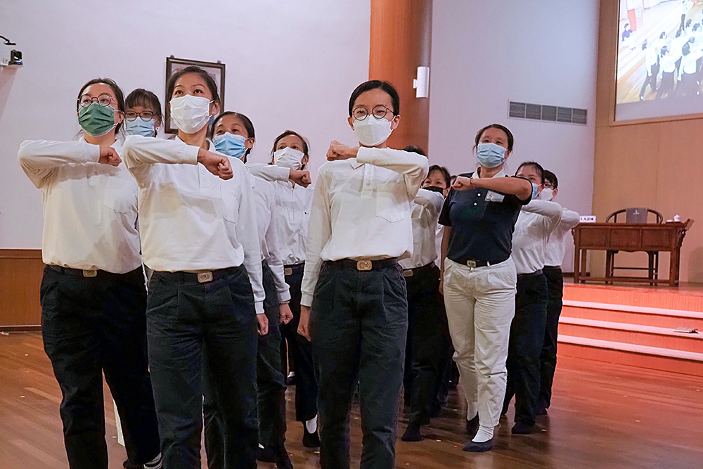 位于岛国北部的中医义诊中心职工,就联同两位西医部职工,趁午休空档练习;而两所幼教中心职工是趁每周五下班后的时段,紧锣密鼓排练。静思堂职工则是每周星期一、三、五,于午休的半小时空档练习。对很多参与过经藏演绎的职工来说,像今天这般反复微调姿势和表情,都是入经藏必经的“化城”。