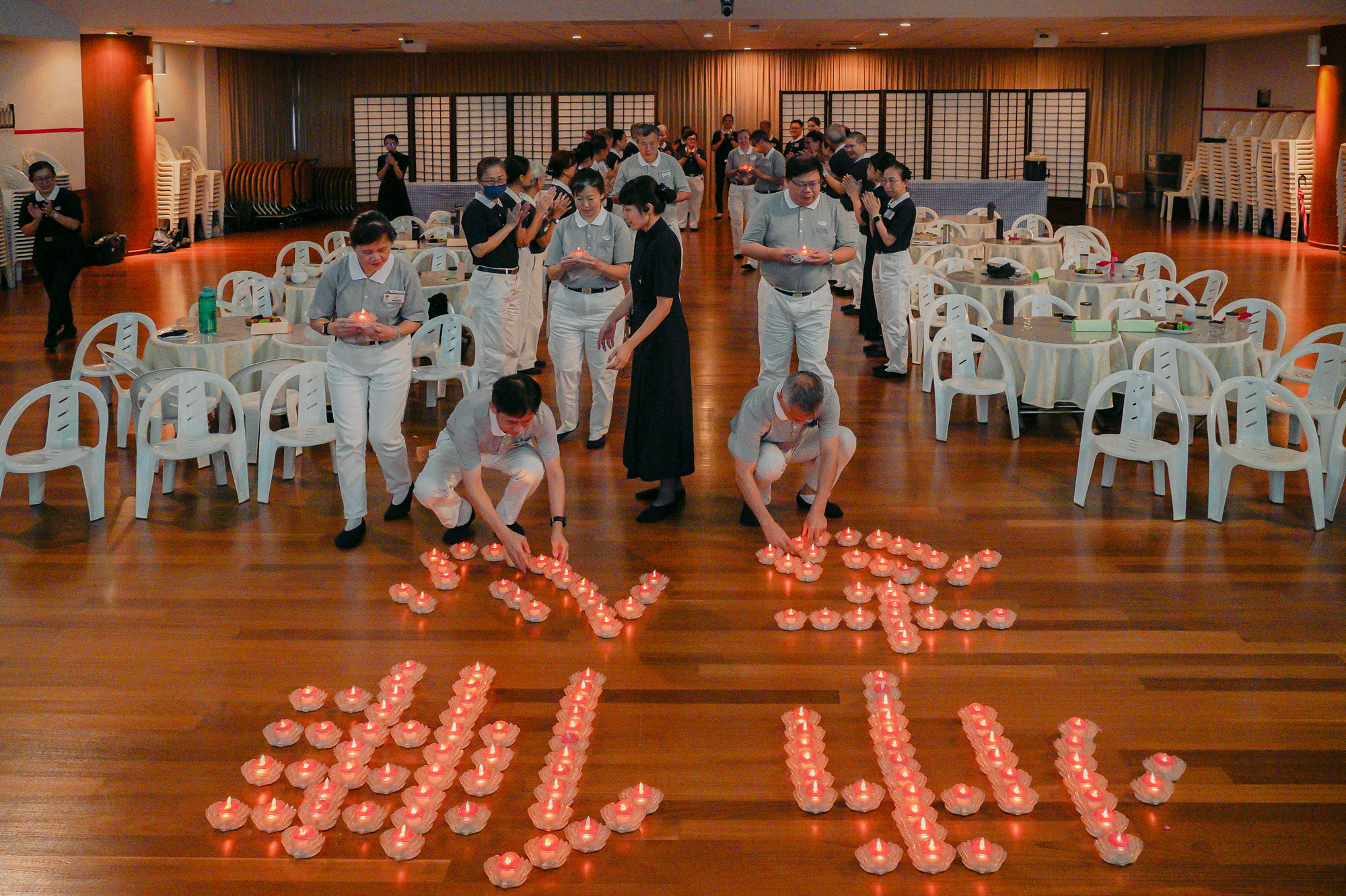 准慈委有序地用心灯排列出“佛心师志”。